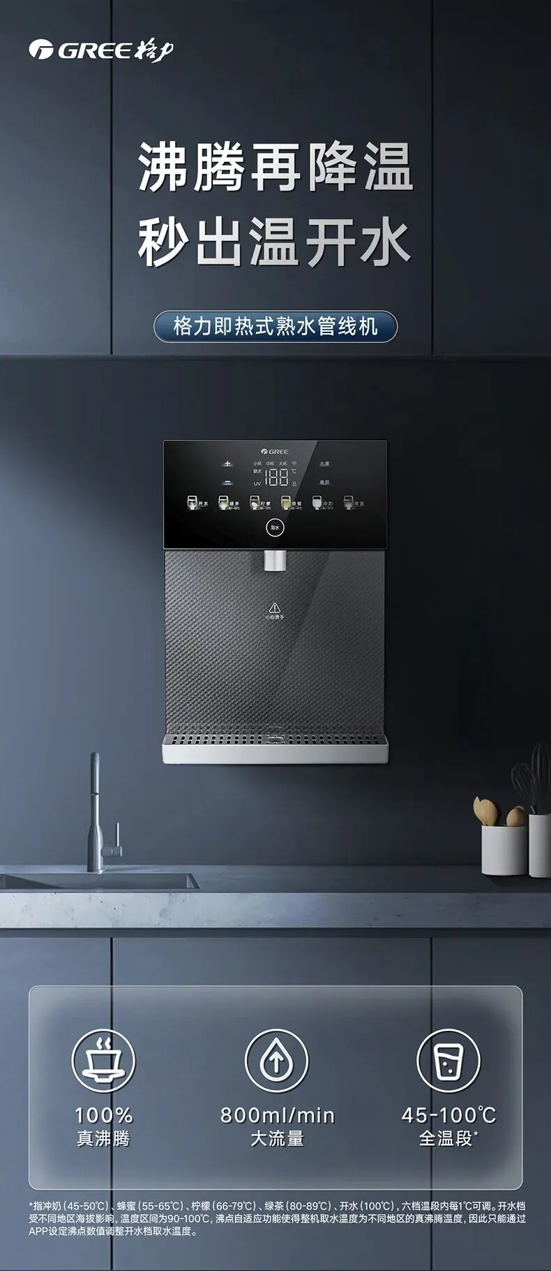 格力壁挂式管线机 速热即饮 智能触控 GX-WJB-01C